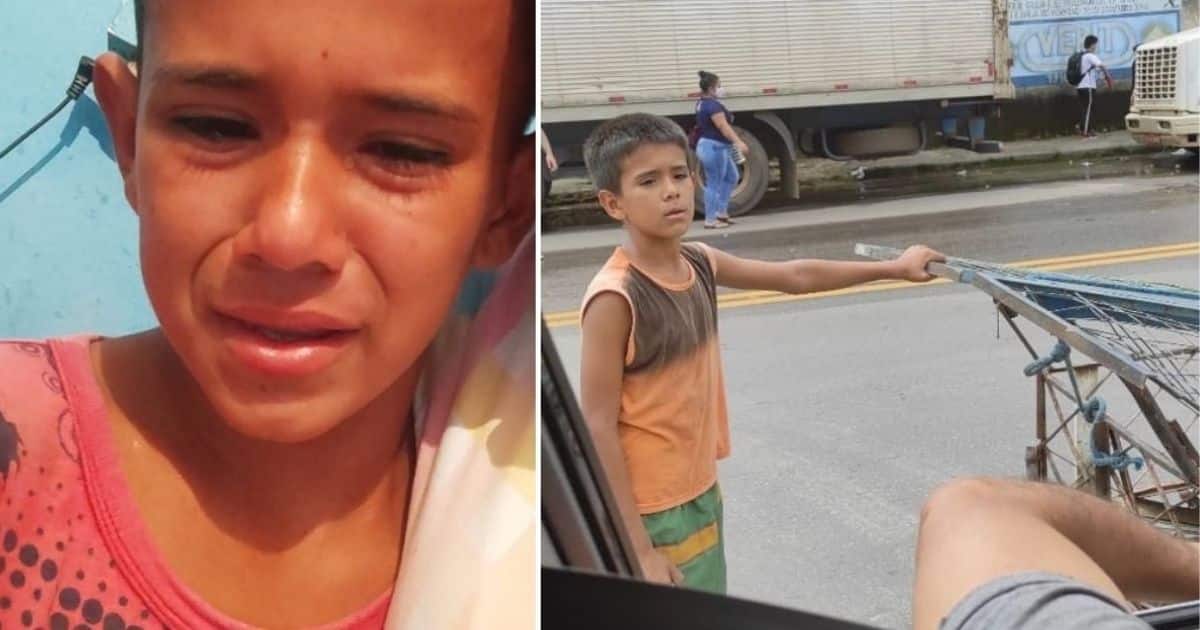 Com o olhar triste e preocupado, o pequeno Expedito Correa, de apenas 11 anos, junta ferro velho para ajudar sua mãe que está desempregada, a dona Luciana Furtado, 34 anos, a pagar o aluguel que está há quatro meses atrasado.