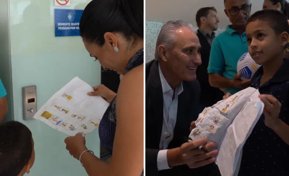 Além disso, Tite autografou bolas para João, enquanto Marta autografou o álbum feito pelo garoto.