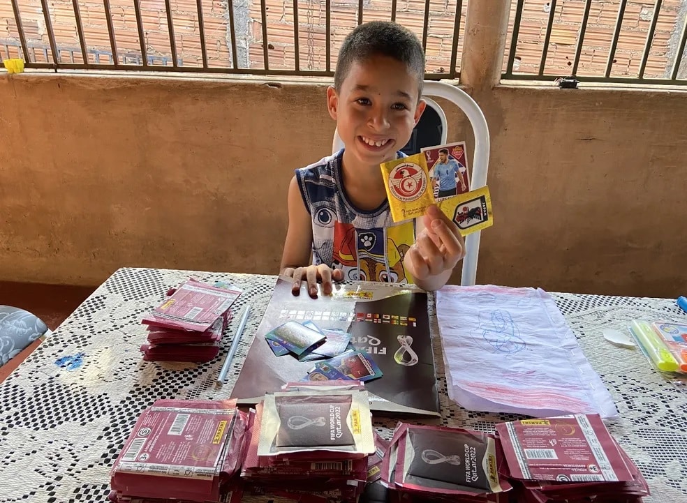 “Conversei com o goleiro Cássio, do Corinthians. Ele disse que, se as minhas figurinhas acabarem, é só avisar que manda mais. Foi muito legal falar com ele”, disse o menino.