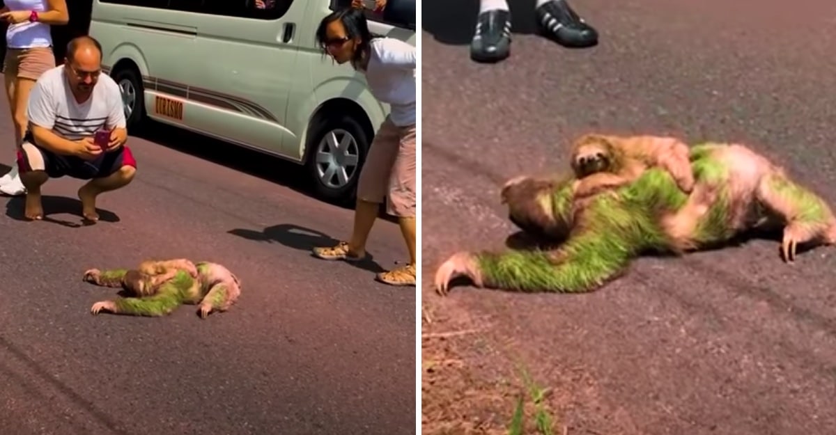 Os motoristas pararam seus carros e saíram para acompanhar a mãe preguiçosa. Muitos deles, diante da cena curiosa, resolveram pegar o celular para tirar fotos e gravar vídeos do animal. Além disso, decidiram parar os carros para que ninguém mais passasse pelo local e colocasse o animal em perigo.