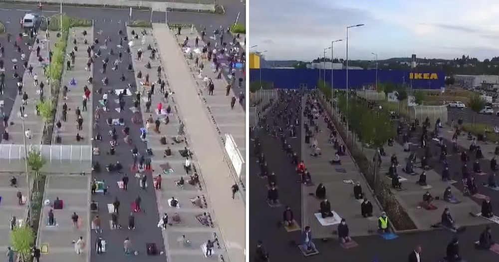 A melhor ideia veio dos muçulmanos que moram na Alemanha e foi realizada com a ajuda da IKEA (grande loja sueca de móveis), que lhes permitiu realizar uma oração socialmente distanciada em seu estacionamento.