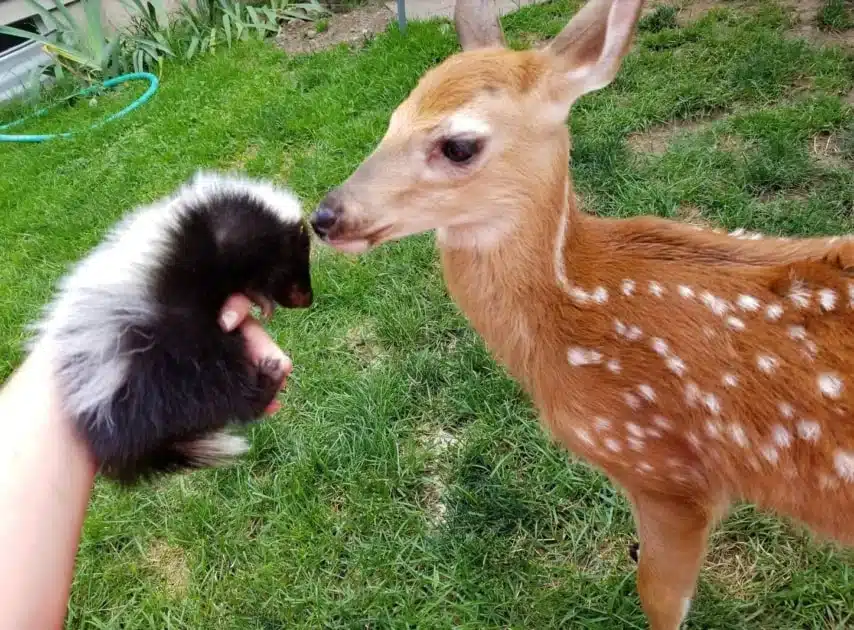 “Eu crio animais selvagens órfãos. Recentemente, a porta dos fundos estava aberta quando uma tempestade estava chegando. Estava indo para a porta da frente, apenas para vê-los ao lado de uma mesa na sala de estar. Disse a eles que poderiam dormir em casa durante a noite.