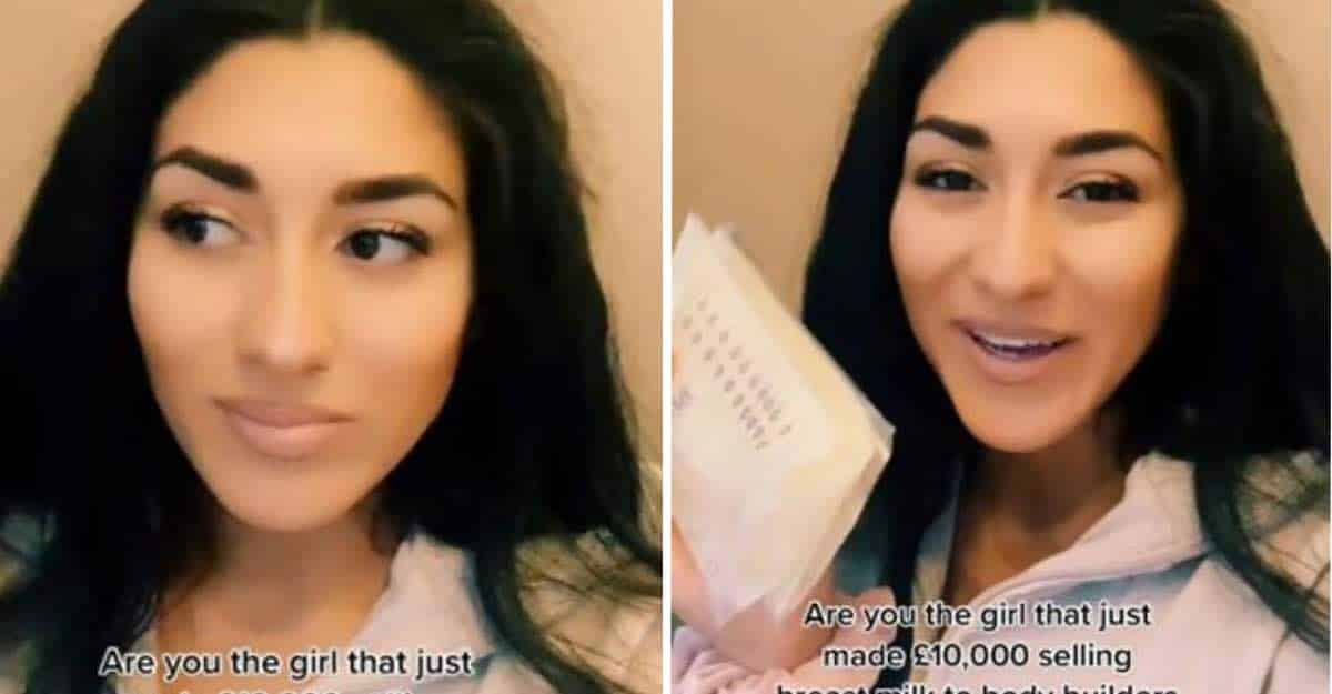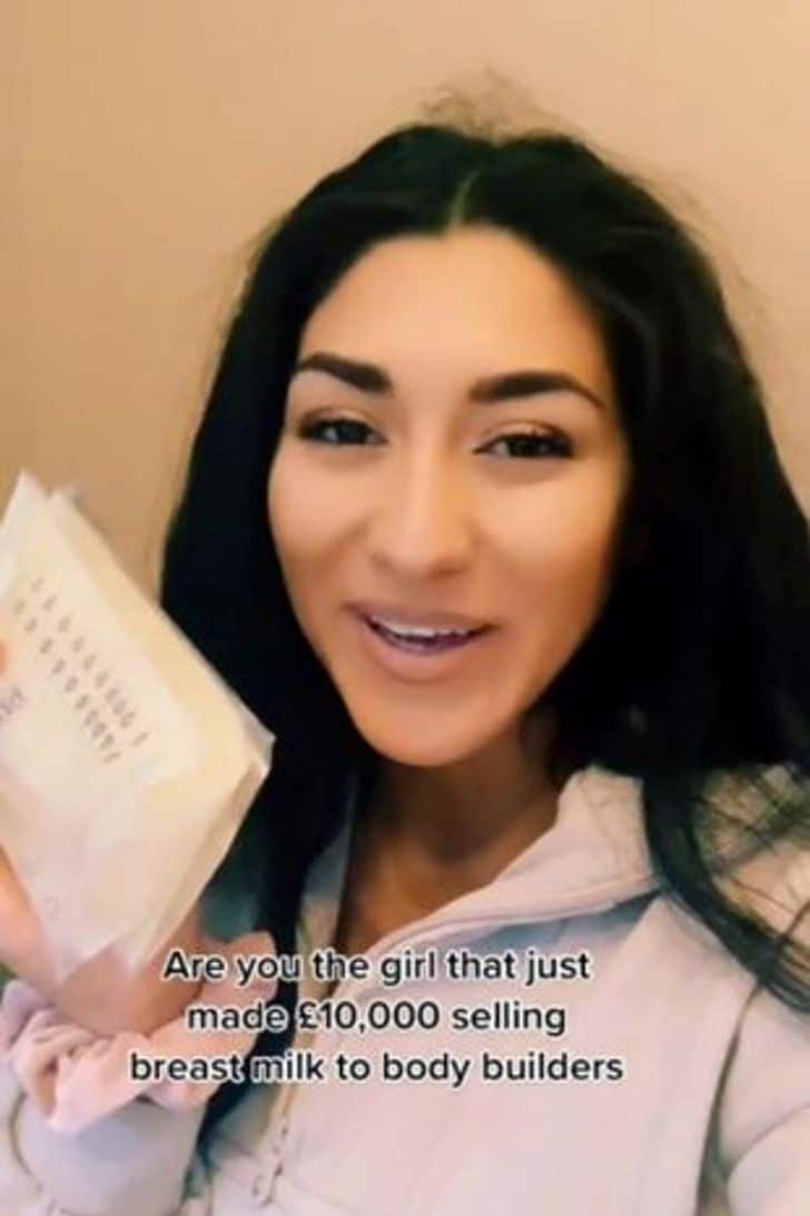 Em sua conta no TikTok. Mila De’brito, uma mulher do Reino Unido, relata sua experiência ao vender seu próprio leite materno para fisiculturistas!