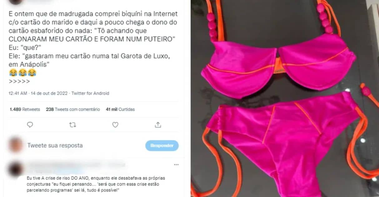 “Comprei biquíni na internet com o cartão do meu marido e daqui a pouco chega o dono do cartão esbaforido do nada: ‘Estou achando que clonaram meu cartão e foram em um *** [casa de prostituição]. Gastaram meu cartão numa tal de Garota de Luxo, em Anápolis’”, contou a cliente Ked Souza, do Rio de Janeiro, no post.