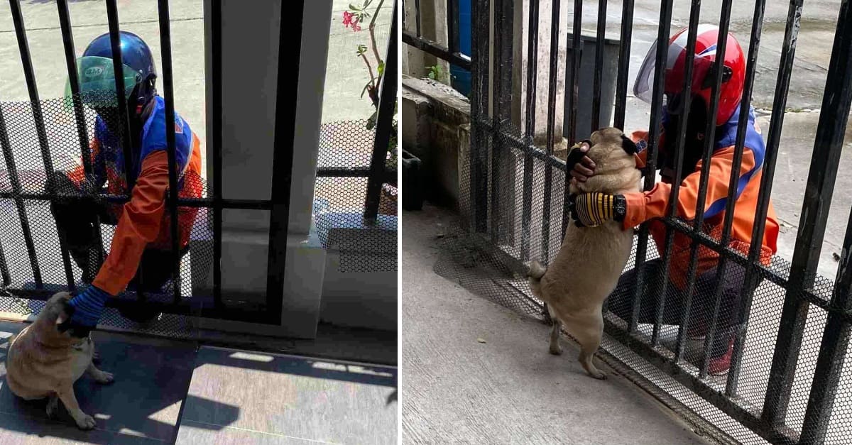 Kaijeaw, naturalmente, havia corrido para cumprimentar o estranho – que havia feito uma pausa em seus deveres para regar o cão com amor.