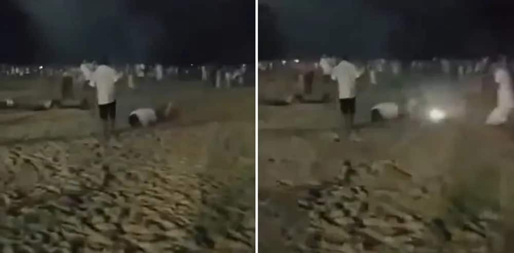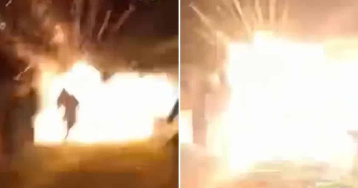 Em meio à queima de fogos, um rojão atingiu a vítima e se prendeu no corpo dela. Segundos depois, em meio ao pânico, o artefato explodiu.