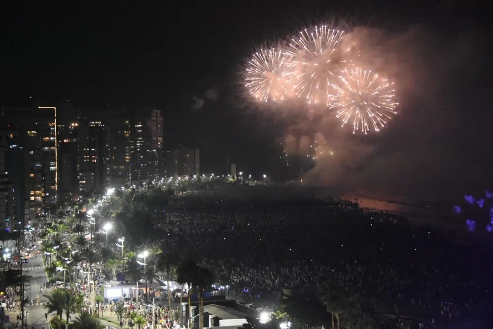 Tragédia em Praia Grande, no litoral de São Paulo: uma mulher de 38 anos morreu imediatamente após um rojão ficar preso no corpo e explodir logo após a virada do ano, neste domingo (1º).