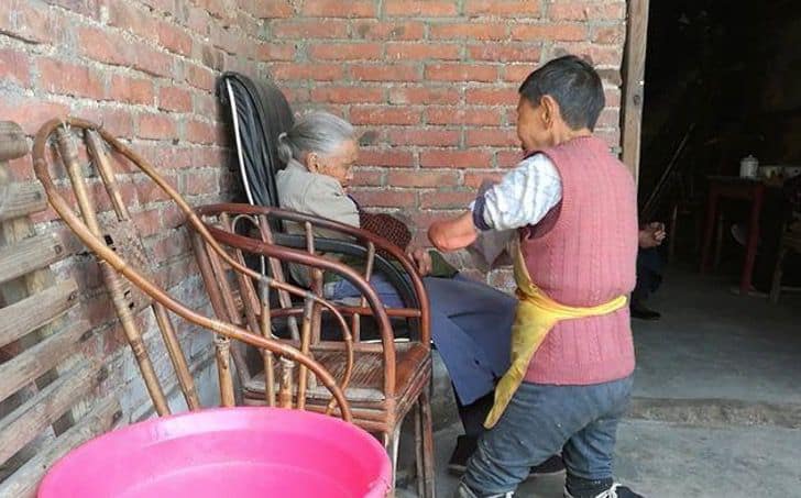 A chinesa Cai Dongfeng, de 75 anos, dedica sua vida todos os dias a cuidar de sua mãe em um vilarejo remoto no sudeste do país asiático, onde vivem juntas.