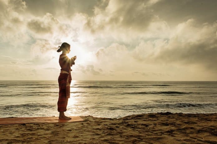 Para experimentar os efeitos transformadores desse gesto, sente-se em uma posição confortável e alongue a coluna, alinhando a cabeça. Em seguida, com as palmas das mãos abertas, vá unindo as mãos em frente ao peito vagarosamente, como se estivesse recolhendo todas as bênçãos para dentro de seu coração. Sinta o espaço sob suas axilas à medida em que alinha os cotovelos em relação aos pulsos. Alinhe sua mente (consciência), seu sentimento (coração) e suas ações (corpo) neste gesto e permaneça na postura com uma respiração suave por alguns momentos. Desfrute da experiência sentindo os efeitos positivos no estado de ânimo e em sua consciência.