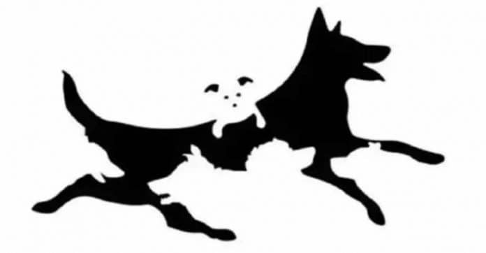 O teste apresenta uma ilustração em preto e branco onde vários cães estão artisticamente escondidos uns nos outros. O desafio é contar quantos cães você consegue identificar na imagem. Segundo os criadores do teste, o número de cães encontrados corresponde a diferentes faixas etárias emocionais.