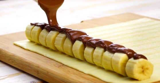 Descasque as bananas e corte-as ao meio, se desejar, pode cortar as pontas da banana. Use um canudinho, uma faca, uma colher de chá ou qualquer ferramenta para tirar a parte de dentro da banana. Depois basta aplicar a Nutella no meio das bananas, a quantidade fica a seu gosto.