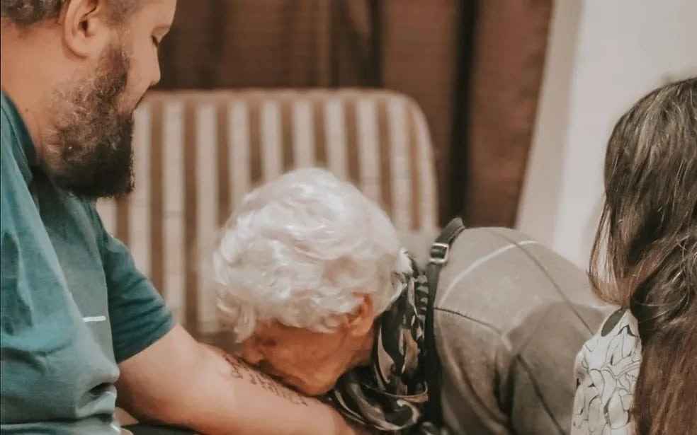 “Eu vou morrer com ela, não vai sair mais”, respondeu Douglas. Em seguida, Dona Luzia beija a marca de suas palavras na pele do neto e deseja à ele “que seja muito feliz”.