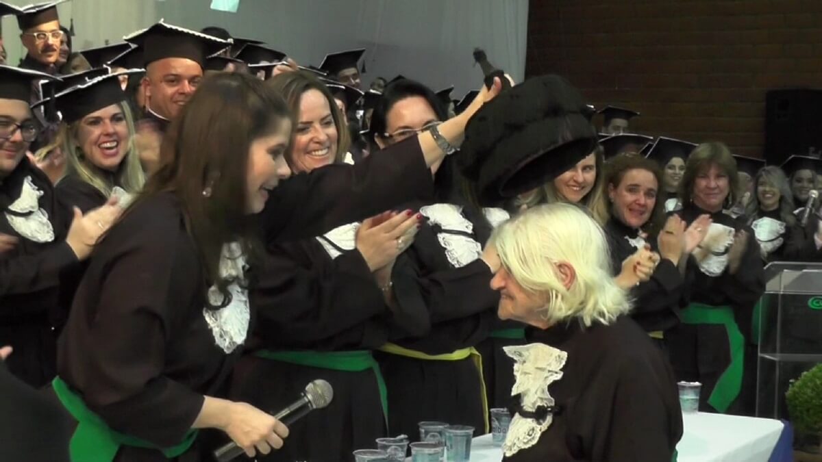 “Foi muito emocionante. Quando ela entrou, todo mundo ficou de pé e eu fiquei sem entender muita coisa, mas assim que a vi já que toda aquela homenagem era um presente para o esforço dela. Imagine, 87 anos e se formar na faculdade. Tem que comemorar”, comentou.