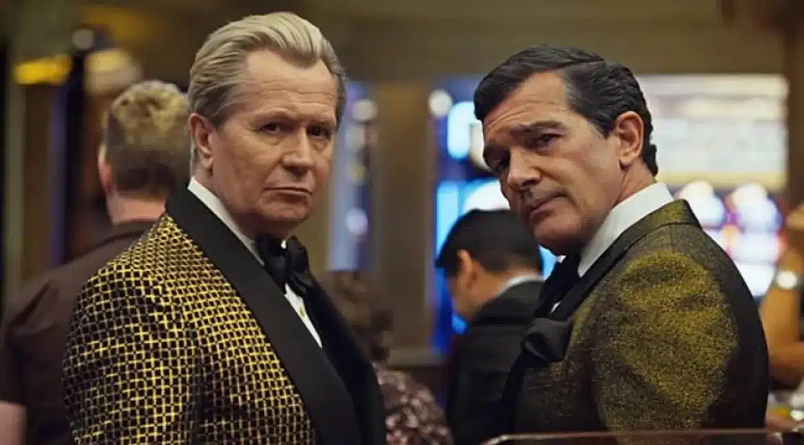 Enquanto isso, dois advogados — interpretados por Gary Oldman e Antonio Banderas — tornam-se os narradores irreverentes de um sistema cheio de artimanhas. Eles quase funcionam como comentaristas esportivos, explicando o passo a passo das fraudes enquanto exibem sorrisos que mascaram intenções questionáveis.