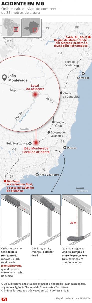 O acidente ocorrido em Minas Gerais nos chocou a todos, na última sexta-feira (4). O veículo caiu de uma altura superior a 30 metros de altura e faleceram, em decorrência dessa queda, 19 passageiros. A queda se deu um viaduto na BR-381, em João Monlevade.