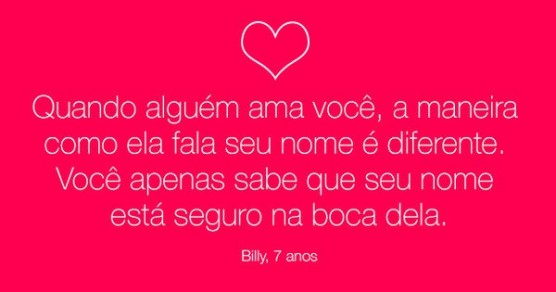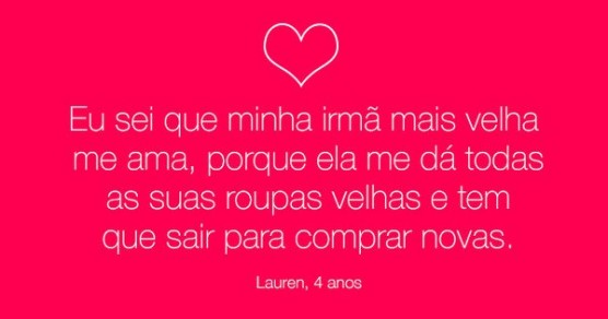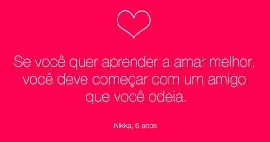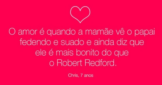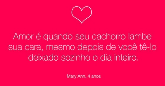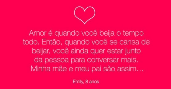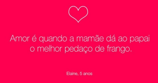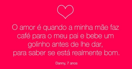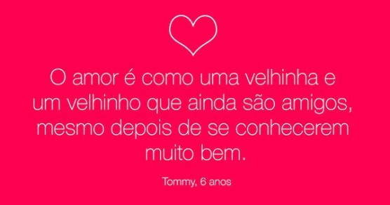 De acordo com uma pesquisa feita por educadores com crianças de 4 a 8 anos o amor é uma mistura de sentimentos e atitudes. O amor é o reflexo. E para você, caro leitor, o que é o amor?