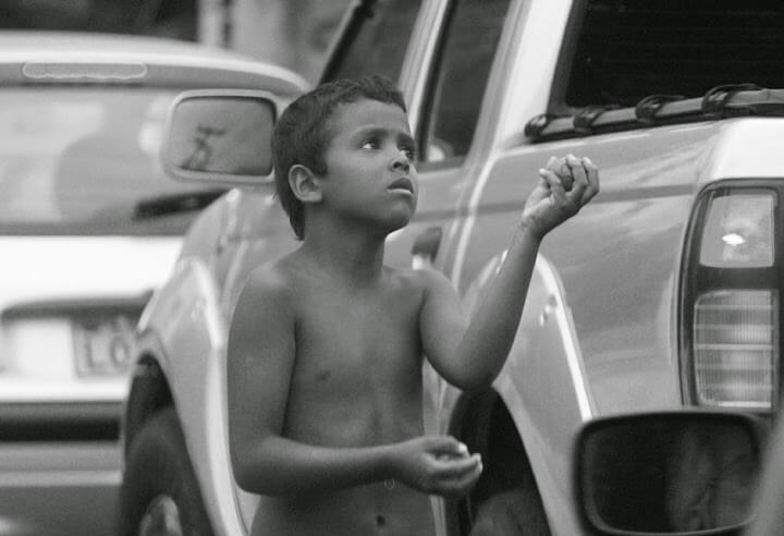 Imediatamente, ele põe a mão no bolso e retira um punhado de moedas. Olha para mim e diz: estou com pena do senhor que está pior do que eu. O meu outro bolso está cheio, posso dividir estas contigo. Pode levar. Respondo-lhe: o que é isso, menino! Você precisa delas para ajudar sua família. O sinal abre e envergonhado desejo-lhe boa sorte.