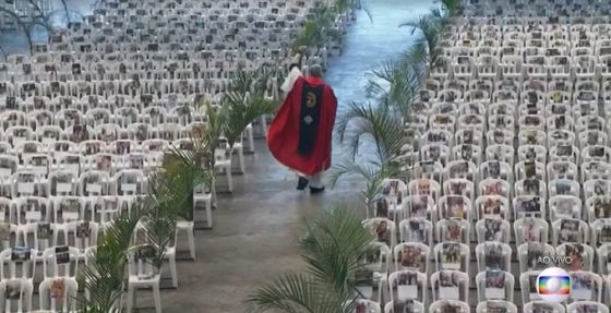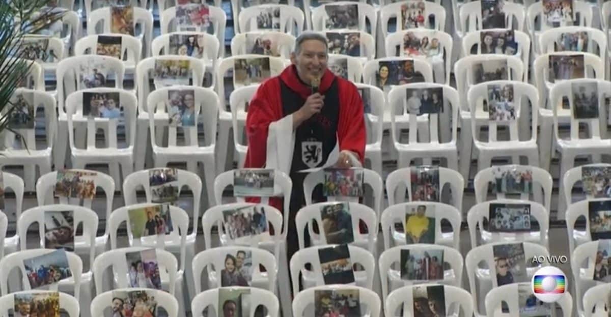 Neste domingo, dia 5, a missa do Padre Marcelo Rossi aos domingos, transmitida pela TV Globo, foi emocionante. O padre decidiu homenagear os profissionais de saúde que estão trabalhando no combate ao coronavírus. Para isso, ele, ao andar pelo salão, mostrou que as cadeiras fotos de profissionais que trabalham em hospitais e postos de saúde.