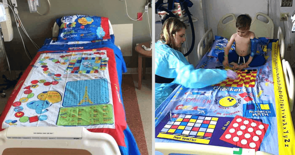 Desolado com a ideia de uma criança passar horas e horas em uma sala branca simples, ele pensou em como sua esposa sempre brincava na cama da criança para ajudá-la a dormir.