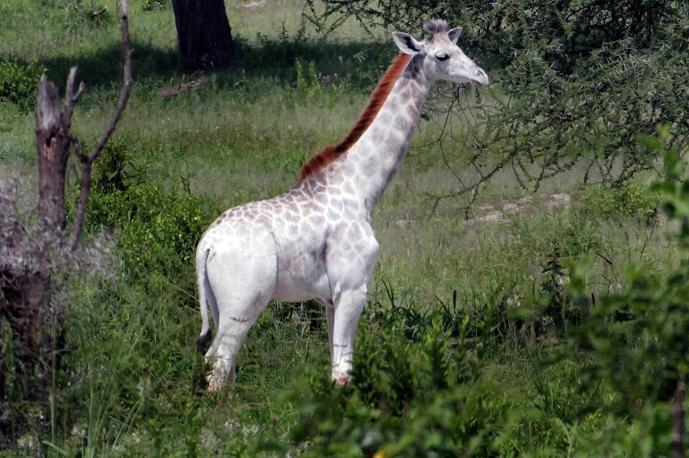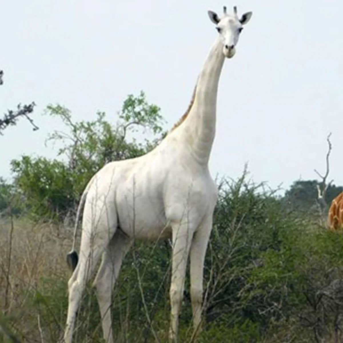 Essa girafa macho é o único remanescente de uma pequena família que possuía um raro traço genético conhecido como leucismo. Diferente do albinismo, essa condição impede que as células da pele produzam pigmentação, mas sem afetar outras características, como a cor dos olhos. Infelizmente, a mãe e o filhote da girafa foram mortos por caçadores ilegais em março deste ano, deixando-o como o último de sua espécie.
