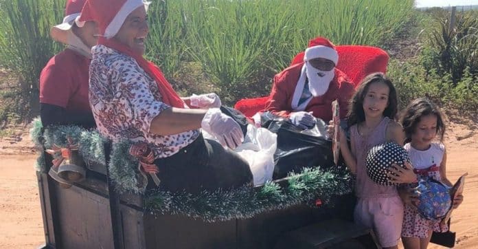 “Nós abandonamos tudo e fomos atrás dos brinquedos. Dentro de casa, na nossa zona de conforto, nós não vemos o Natal. Dessa vez, o sol estava muito forte mesmo, a temperatura estava queimando. Fazemos isso só para ver as crianças felizes. Não tem como deixar passar a alegria das crianças”, completou a agricultora.