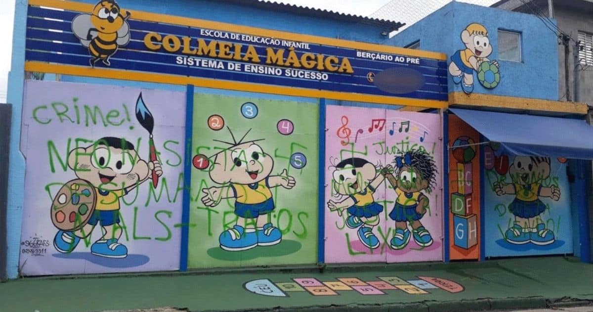 Os vídeos que mostram a tortura das crianças tiveram sua autenticidade corroborada pela polícia. Nesta segunda-feira (14), revoltados com o caso, moradores da cidade picharam os portões da escola com palavras como neonasistas [sic]”, “desumano”, “mals-tratos [sic]”, “Justiça”, “lixo”, “demônio”, “Deus ta vendo [sic]”.