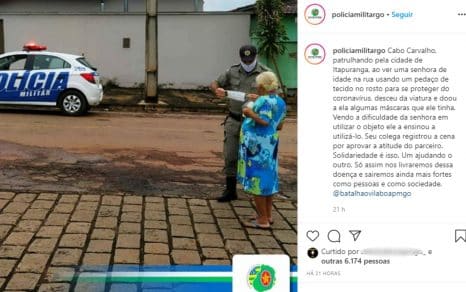 Ele estava a caminho para trocar de turno, quando viu uma senhora que passava pela rua com um pano no rosto tentando, sem máscara, evitar contaminação por coronavírus.