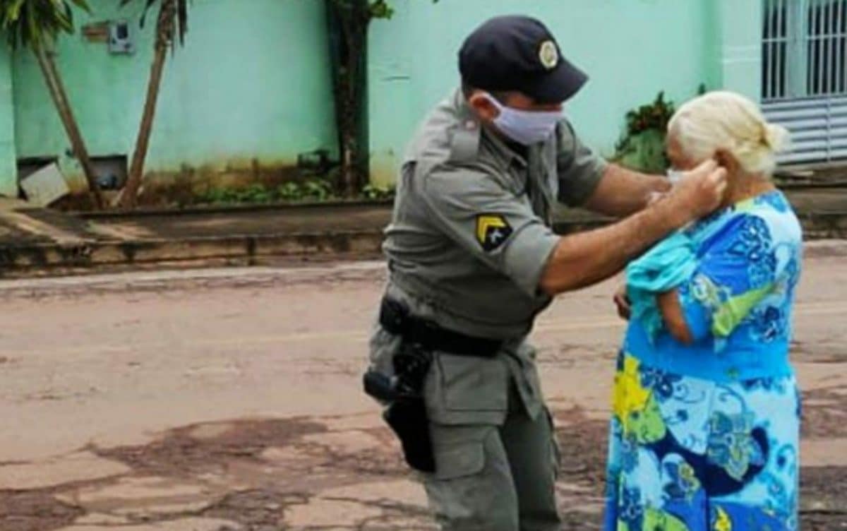 Ele estava a caminho para trocar de turno, quando viu uma senhora que passava pela rua com um pano no rosto tentando, sem máscara, evitar contaminação por coronavírus.