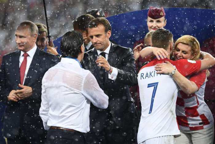 A imagem de Kolinda, embaixo de chuva, na alegria do cumprimento aos seus jogadores, entrará para a história em contraste com o semblante sempre austero de Putim, presidente da Rússia, este devidamente coberto da chuva por funcionários do cerimonial.