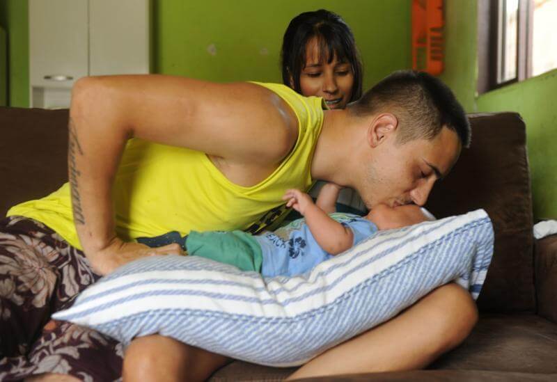 “A primeira pessoa que ele viu e que segurou ele no colo neste mundo fui eu. Foi o momento mais emocionante da minha vida e me fez acreditar ainda mais na minha mudança”, afirma o jovem pai, enquanto acaricia a mão do bebê.