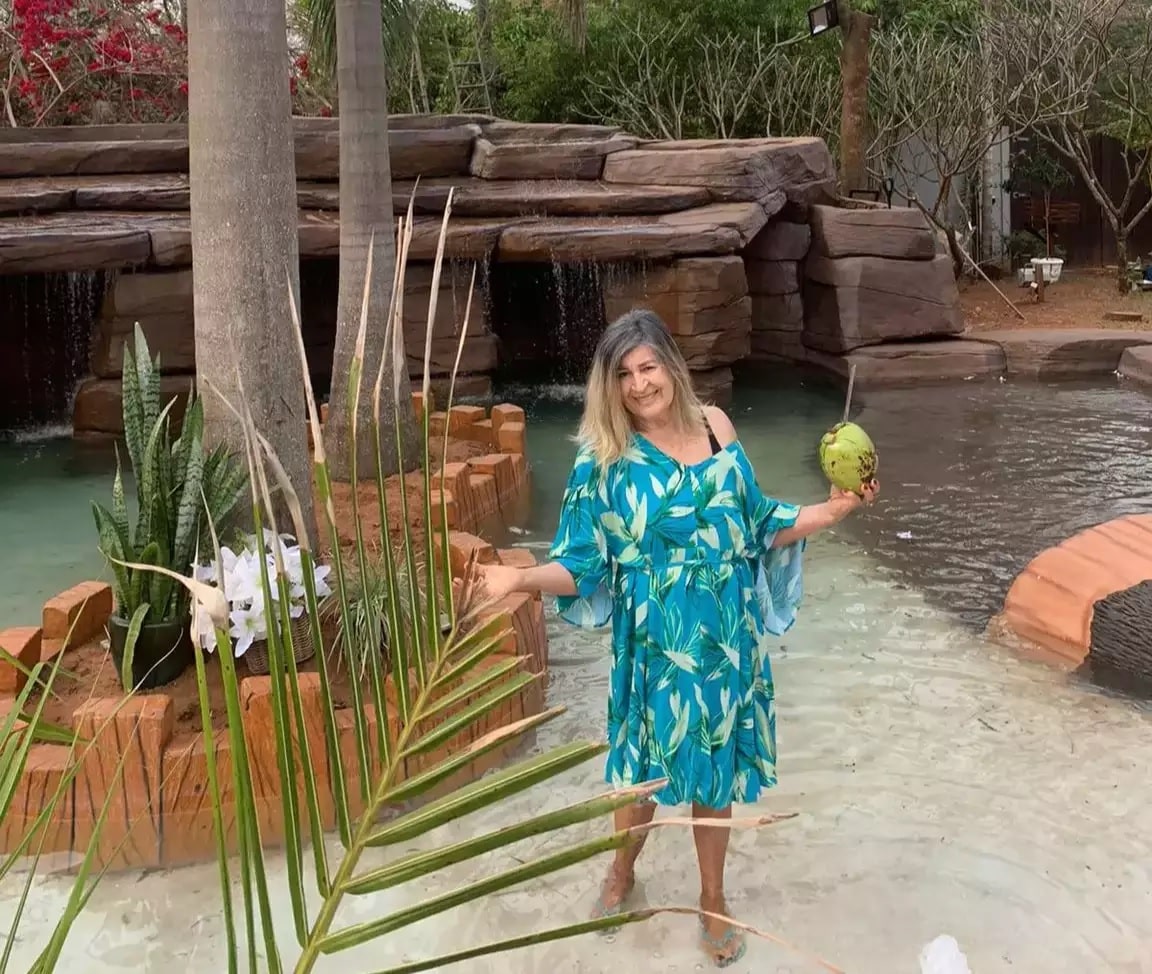 Nascida e criada na Bahia, a professora Maria Helena Nóbrega, 76 anos, é apaixonada pelo mar desde criança. Desde que se mudou para Campo Grande (MS), ela nunca se acostumou com a ausência de praias na cidade – tanto que decidiu criar sua própria “prainha” em seu sítio, onde mora com o marido, a 17 km da capital.