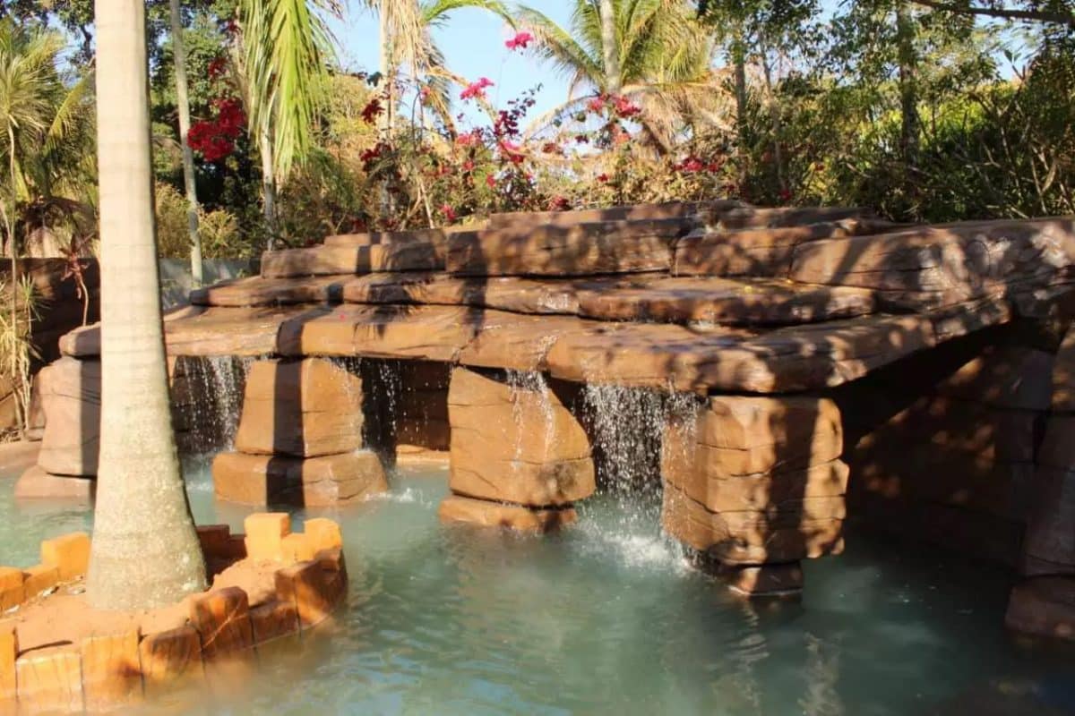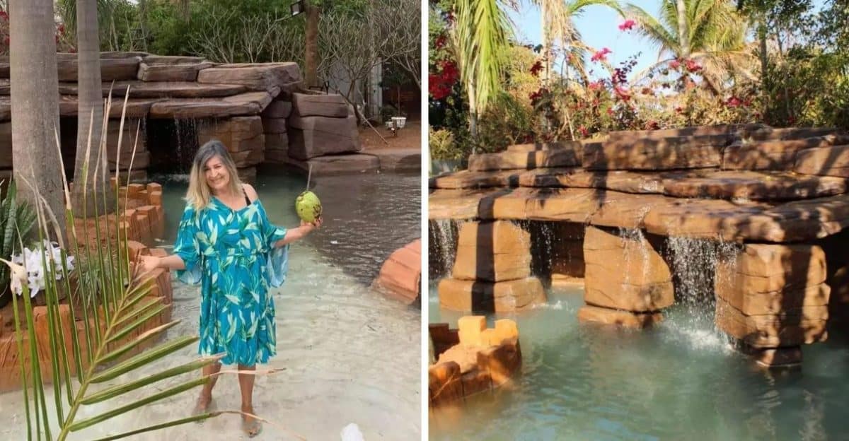 A “prainha” é toda decorada com pedras, cascatas, cachoeira, piscina, além de ser rodeado por diversas plantas. Mais: a pedido de Maria, a equipe envolvida na construção do lugar criou um efeito para deixar a areia parecida com a da praia!