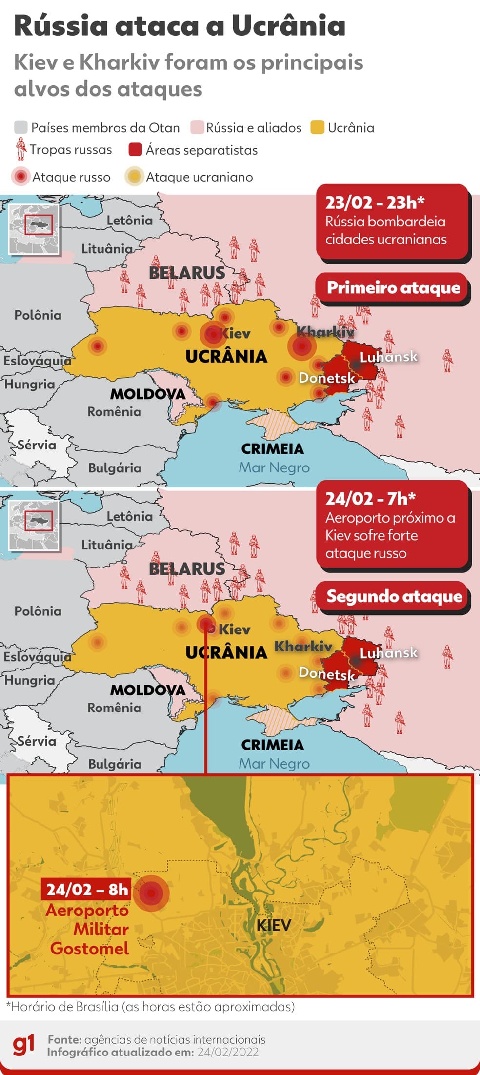 Como autoridades de todo o mundo já alertavam há um tempo, o presidente russo, Vladimir Putin, anunciou o início de uma operação no leste da Ucrânia na noite desta quarta-feira (23), horário em Brasília. Contudo, o ataque foi além da região de Donbass e diversas cidades ao longo de toda a fronteira ucraniana foram bombardeadas.
