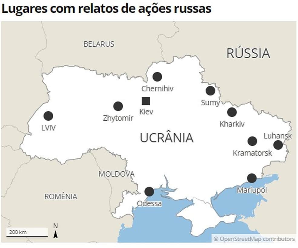 * – a Rússia iniciou a invasão da Ucrânia em diversos pontos do país