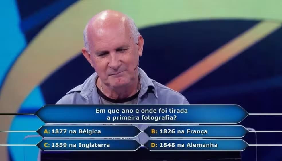 A resposta certa é C – 1826 na França, quando Joseph Nicéphore Niépce registrou a primeira imagem permanente. Teria levado o prêmio ou saído de mãos vazias?