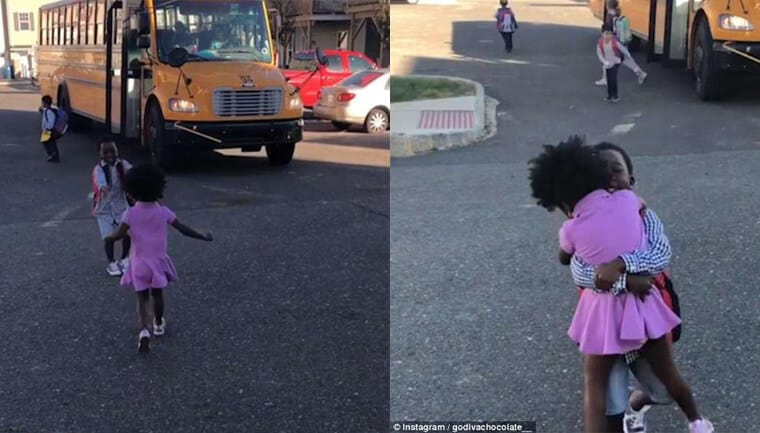 É aí que, diariamente, ele é recebido com um abraço afetuoso de sua irmã mais nova, Ava, de 3 anos. Ela o espera diariamente, no horário da sua chegada, para esse “ritual do abraço”.