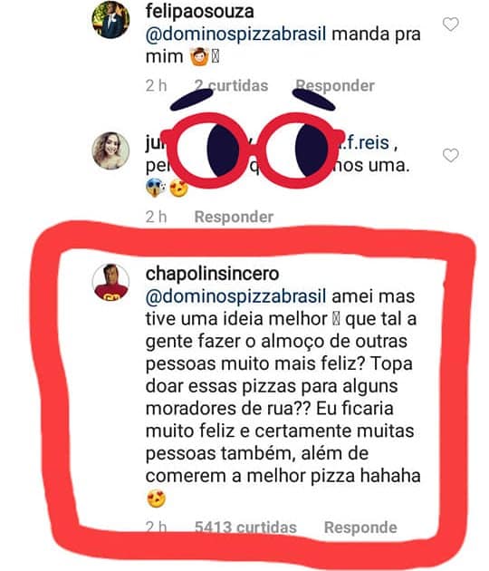 A Dominos Pizza Brasil ofertou pizzas à equipe da página.