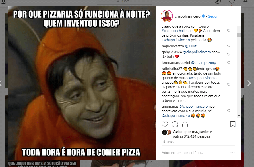 O perfil do @chapolinsincero fez um post zuando o fato de pizzarias só abrirem à noite. A Domino’s Pizza respondeu ao post e a repercussão do caso está contado em fotos p vcs!