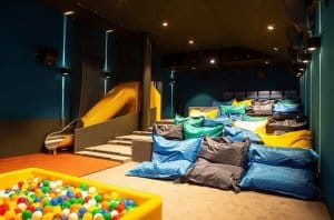 Não só os adultos desfrutam da nova experiência de cinema – há também uma área de cinema infantil, com sacos de feijão, uma piscina de bolinhas e até um escorrega para usar em vez de escadas. O ingresso para crianças custa 14,50 francos (R$57,31) por criança.