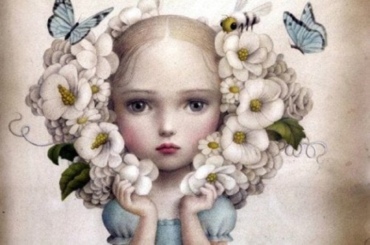 menina com borboletas em torno de sofrer uma promessa quebrada