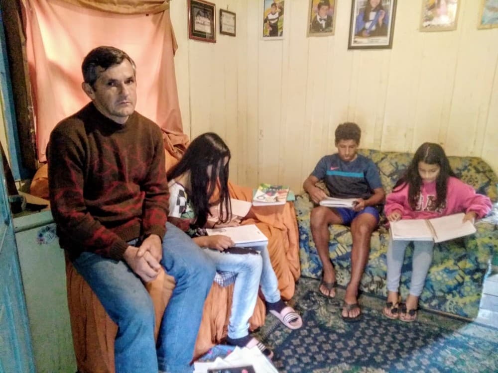 Seu salário está atrasado há mais de três meses. A ele e três filhos têm sobrevivido de doações.