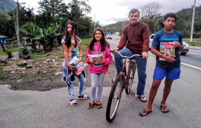 Para o roçador Edemilson Wielgosz “desistir não é uma opção”. Sem internet, ele pedala do sítio em Guaratuba, às margens da BR-376, no litoral do Paraná, até o colégio que fica em Garuva (SC), a 14 km de sua casa.