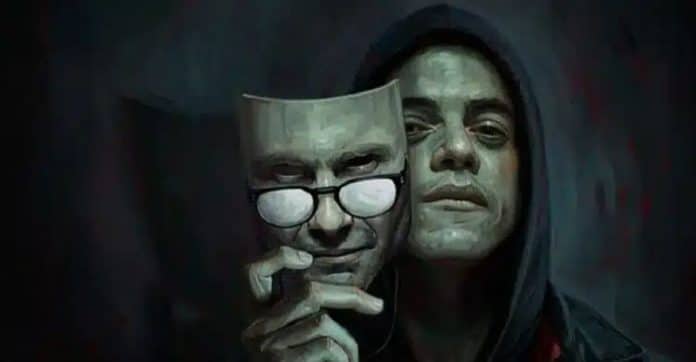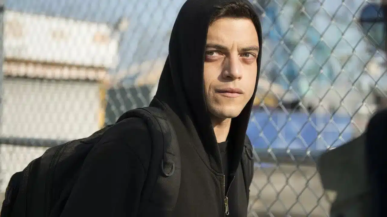 Sua vida toma um rumo drástico quando ele é recrutado por Mr. Robot, interpretado por Christian Slater, o misterioso líder de um grupo de hackers chamado “Fsociety”.