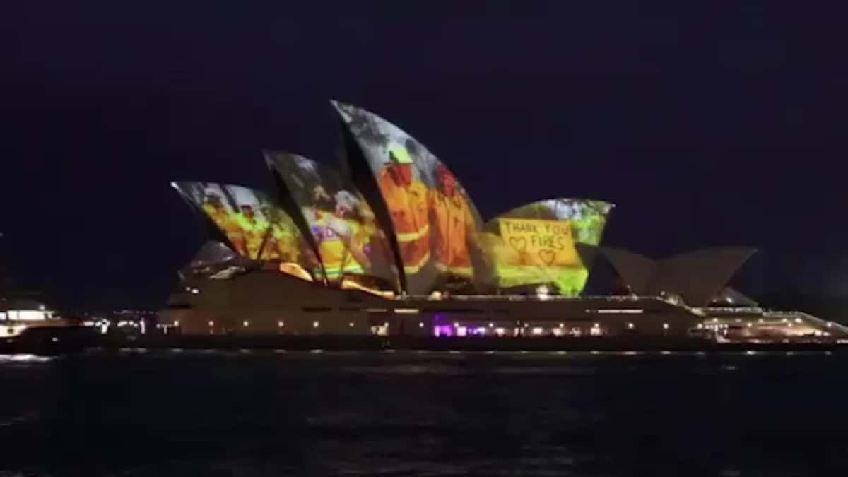 Desde o último sábado foram projetadas sobre as estruturas do teatro, como se fosse um grande telão, imagens dos dias tenebrosos que a Austrália atravessou nos últimos três meses e daqueles que bravamente lutaram para impedir que a tragédia fosse ainda maior.