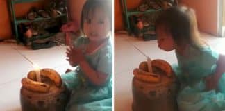 Menina completa 3 anos e comemora feliz com seu “bolo” de aniversário feito de bananas