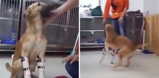 Cachorro que teve as patas cortadas ganha próteses e não é capaz de conter a alegria