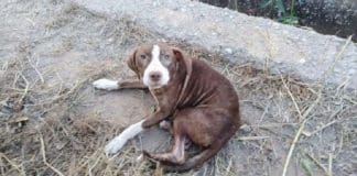 Cão gigante é abandonado em estrada e adotado por família que passou no local