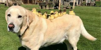 Após a mãe sumir, labrador “adota” 7 filhotinhos de pato