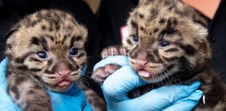 Duas belas panteras nebulosas nascem em cativeiro e dão esperança à sua espécie