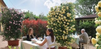 Biombos verdes, com plantas e barras de flores, mantém o distanciamento social em bares e restaurantes